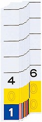 100の位に黒ナンバーが入った3桁ラベル。ターミナルデジット方式で効率アップ。取り出しに便利なパッケージ入り。