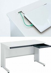 ●材質/天板:(表面)メラミン化粧板(芯材)スチール(仕上げ)ポストフォーム(エッジ・サイド)ABS(エッジ・背面)PP、脚・袖:スチール(焼付塗装)、袖引出前面:ABS、アジャスター:PA