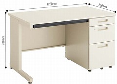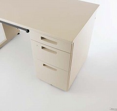 ●材質/天板:(表面)メラミン化粧板(芯材)スチール(仕上げ)ポストフォーム(エッジ・サイド)ABS(エッジ・背面)PP、脚・袖:スチール(焼付塗装)、袖引出前面:ABS、アジャスター:PA
