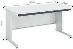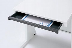 ●材質/天板:(表面)メラミン化粧板(芯材)スチール(仕上げ)ポストフォーム(エッジ・サイド)ABS(エッジ・背面)PP、脚・袖:スチール(焼付塗装)、袖引出前面:ABS、アジャスター:PA