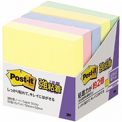 つきにくかった樹脂面にもしっかり貼れて、きれいにはがせる強粘着タイプのポストイット。手軽に使えて書き込みしやすい50mm角。文字が見やすいパステルカラー。混色5冊セット。