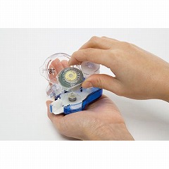強粘着タイプで、大型の封筒や厚手の封筒も1度塗りでしっかり接着。特殊ヘッドで狙ったところからピッタリのり付けできる。