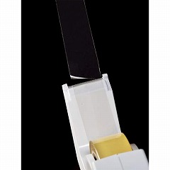 独自の特殊加工刃で約1/2の軽い力でテープを切ることができます(コクヨ従来品比)。切ったテープの切り口はまっすぐキレイです。刃はテープののりが付きにくく、切り心地が長持ちします。