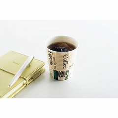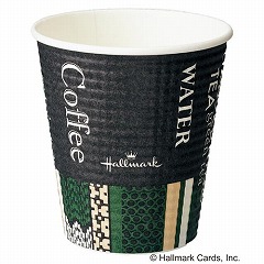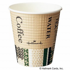 ホールマークデザイン。エンボス(凸凹)加工の紙を巻きつけて断熱性をもたせた、カフェ風のオシャレな紙コップです。