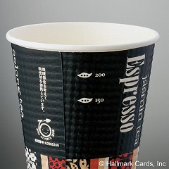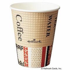 ホールマーク社デザイン。エンボス(凸凹)加工の紙を巻きつけて断熱性をもたせた、カフェ風のオシャレな紙コップです。