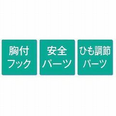 ●機能/安全パーツ、長さ調整パーツ、胸ポケット用フックつき