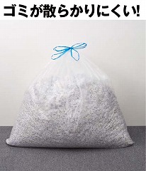 ひも付きだから結びも簡単、ゴミも散らかりにくく、取り出しやすいシュレッダー袋です。