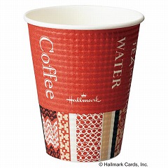 ホールマーク社デザイン。エンボス(凸凹)加工の紙を巻きつけて断熱性をもたせた、カフェ風のオシャレな紙コップです。