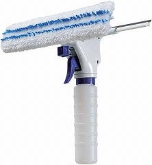 スパッと水拭き&水切り。モップで汚れを拭き取り、水切りゴムで仕上げの水切り。洗剤・ホース・バケツいらず。手軽に窓掃除。