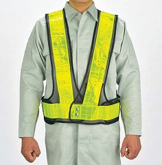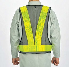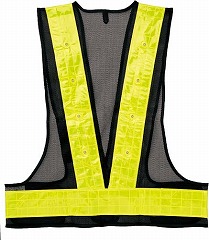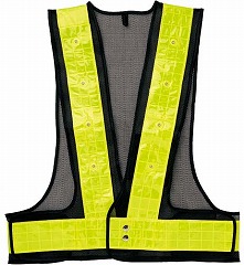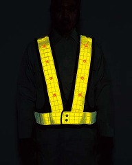 正面8個・背面8個の赤色LEDが点滅するので、夜間でも認識しやすい。両側ファスナーでウエストサイズが調整可能です。