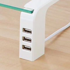 デスク上有効活用に便利なデスクボード。強化天板ガラス採用で高い耐久性!3口のUSBハブを前面配置で格段に使いやすい!