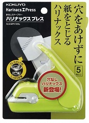 穴をあけずに紙をとじる<ハリナックスプレス>とじ部がかさばらず、外したい時キレイに外せます。
