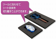 引き出しの整理や、製造現場の工具整理に!一目でツールの有無がわかり紛失・混入防止に役立つシートです。10mm方眼ミシン目入りでツール形状に合わせて簡単に型ぬきができます。