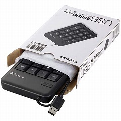 環境に配慮したパッケージを採用。Excelに便利な[Tab]キー付きで、ノートパソコンでの使用に最適なスタンダードUSBテンキーボード。