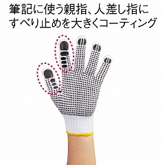 着けたままでも筆記・伝票めくりなどの事務作業がしやすい!筆記に使う親指・人差し指にすべり止めを大きくコーティングした軍手。