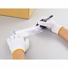 着けたままでも筆記・伝票めくりなどの事務作業がしやすい!筆記に使う親指・人差し指にすべり止めを大きくコーティングした軍手。