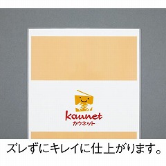 お試し用10枚パック!溶着部分のL字型に合せて紙を挟むと、左右の位置あわせがしやすいので真っ直ぐ挟めて仕上がりがキレイです。掲示物やメニューなどの作成にオススメなラミネートフィルムです。