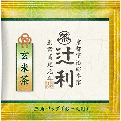 京都宇治の茶匠、辻利が誇る銘茶の美味しさを三角バッグに。炒り米の香ばしさが引き立つ味わいです。