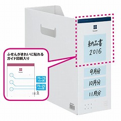 見出し部分にふせんが貼れて、スリット付きで落下も防止。ニス引き仕様でラベルやテープがはがしやすいファイルボックス。底板に巻き込み防止機能で薄い書類もたわみにくい。ふせんがキレイに貼れるガイド印刷付き。
