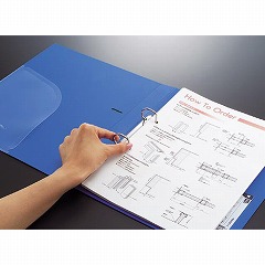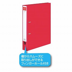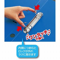 リングを内側につまむとロックが外れラクに開きます!Dリングなので、書類の抜き差しがしやすく、書類の端をそろえた保管も可能。棚からスムーズに取り出しができるフィンガーホール付き。