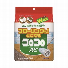 強弱のダブル粘着加工テープにより、床に貼り付かずフローリングでもカーペットでもごみが取れる。