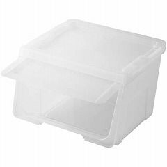 カバのような大きな口で、ラクラク出し入れできる収納ケース。フタはスライド式で、本体内に収納OKだから邪魔にならない!隙間収納にも便利なスリムタイプ。