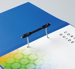 操作性・保持力アップ。スライドコマは手に馴染み操作が楽。とじ足とレールは書類のズレを防ぐ強い保持力。