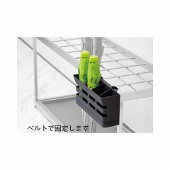 折りたたみ傘専用の傘立て。既存の傘立てにバンドで止めて使用します。(※取り付けできない傘立てもあります。イラスト参照。)