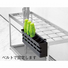 折りたたみ傘専用の傘立て。既存の傘立てにバンドで止めて使用します。(※取り付けできない傘立てもあります。イラスト参照。)