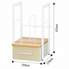 文具やボックスティシューを収納可能な引き出し付きのブックスタンド。