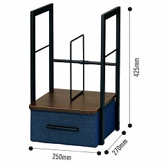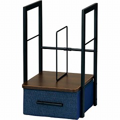 文具やボックスティシューを収納可能な引き出し付きのブックスタンド。