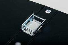 パイプにスリットが入っていて、つづりひもへの移し替えが簡単です。左右どちらからでも開けられる両開きタイプ。しかも金具の上側を押すので書類の量にかかわらず開閉しやすいファイルです。