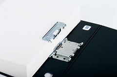 パイプにスリットが入っていて、つづりひもへの移し替えが簡単です。左右どちらからでも開けられる両開きタイプ。しかも金具の上側を押すので書類の量にかかわらず開閉しやすいファイルです。