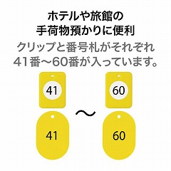 手荷物預かりに便利な番号札+クリップ式。ホテル・旅館、飲食店に最適。20番単位で購入できます。