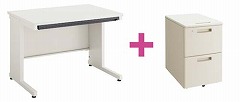 ●セット内容/平机(幅1000×奥行700mm・ナチュラルグレー色)×1台、ワゴン(2段・ナチュラルグレー色)×1台