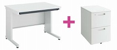 ●セット内容/平机(幅1000×奥行700mm・スノーホワイト色)×1台、ワゴン(2段・スノーホワイト色)×1台