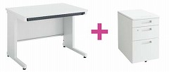 ●セット内容/平机(幅1000×奥行700mm・スノーホワイト色)×1台、ワゴン(3段・スノーホワイト色)×1台