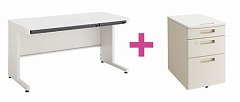 ●セット内容/平机(幅1400×奥行600mm・ナチュラルグレー色)×1台、ワゴン(3段・ナチュラルグレー色)×1台