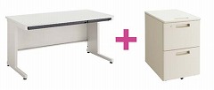 ●セット内容/平机(幅1400×奥行700mm・ナチュラルグレー色)×1台、ワゴン(2段・ナチュラルグレー色)×1台