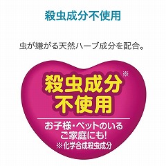 虫が嫌がる天然ハーブ成分を配合。爽やかな香りと天然消臭成分で快適なお部屋をつくります。殺虫成分を含んでいません。