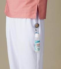 リール付で伸縮自在。携帯できるから移動先でいつでも手指消毒ができる。