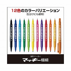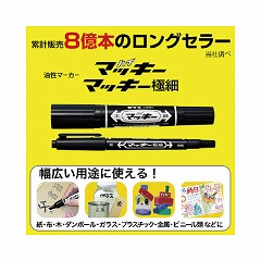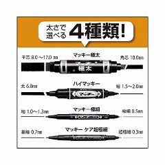 1本で細・極細書き両用。紙、布、木、ダンボール、ガラス、プラスチック、金属、ビニール類など幅広く使えます。有害なトルエンなどを使わないアルコール系インクを使用。速乾性、耐水性にも優れています。