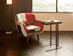 2段階高さ調節可能。天板下部収納付きサイドテーブル。