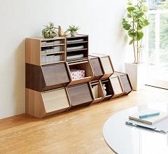 デザイン性のある木目調で収納をインテリアに。収納量に合わせて棚の位置を変えることができます。A4サイズ横置きできるので、書類整理に最適。