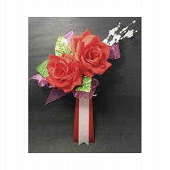 ●材質/花:オーガンジー・ポリエステル、葉・茎:ワイヤー芯・合成繊維、リボン:ナイロン・ポリエステル