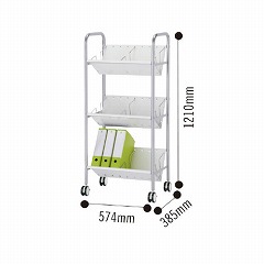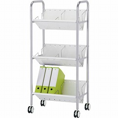 整頓しやすい仕切り棒がついて大型キャスターで移動しやすい明るいホワイトのファイルワゴンです。