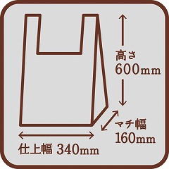 ●総幅(仕上幅+マチ)×高さ(mm)/500(340+160)×600
