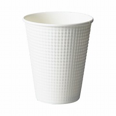 エンボス(凸凹)加工の紙を巻きつけて断熱性をもたせた紙コップです。