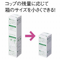 化粧箱の側面に切り込みを入れました。紙コップの残数に合わせ、箱が小さくまとまって収納に便利です。