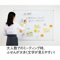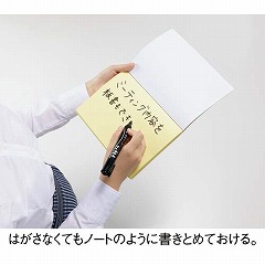 150×203mmの大型サイズで大きな文字が書ける大判ミーティングふせん。会議の場で様々な意見を壁に貼って一覧化する時などに便利です。表紙付きだからバッグや引き出しでの保管時も1枚目が汚れにくい!